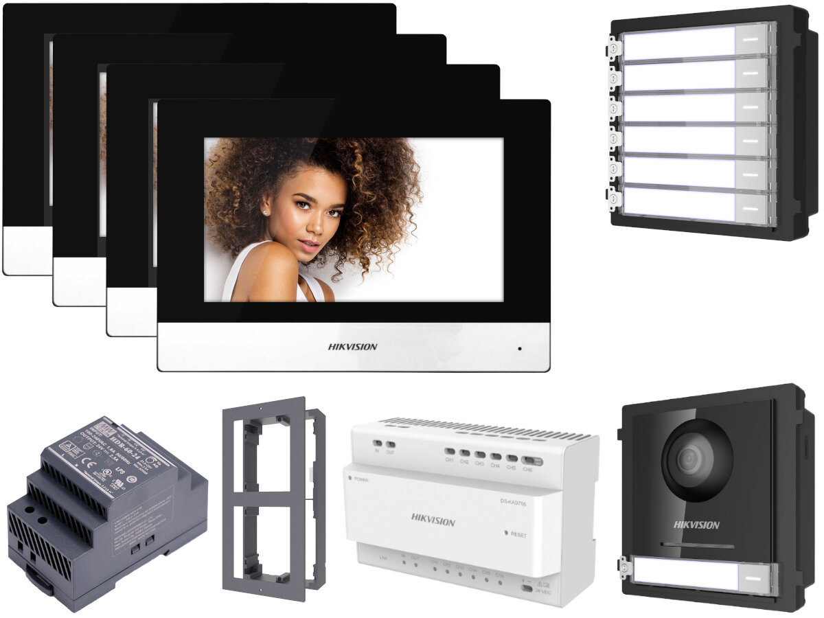 - "Hikvision" 4 šeimų IP vaizdo įėjimo durų rinkinys