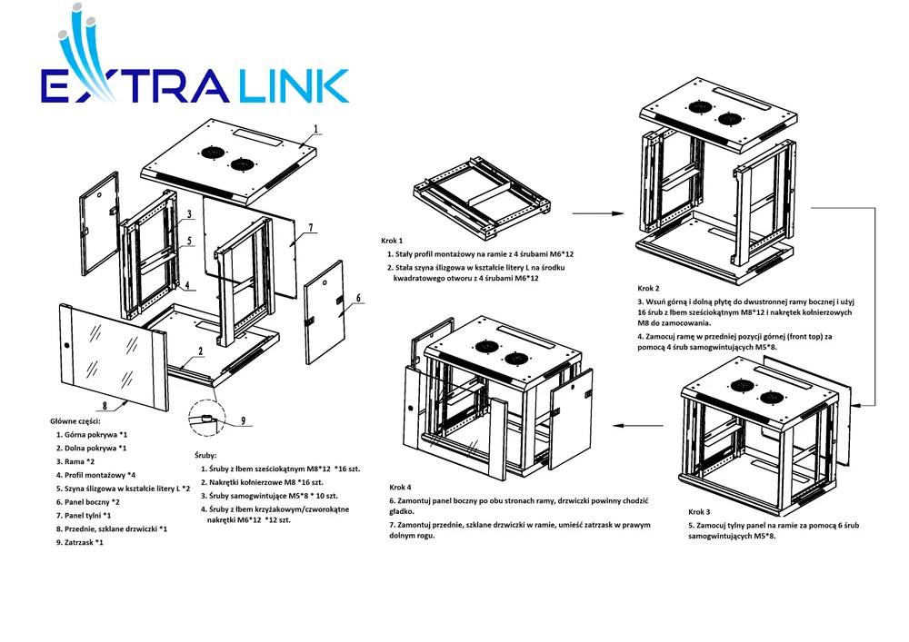 "Extralink" stovo spinta skirta montuoti ant sienos biuruose, tinklo serverių patalpose ir vaizdo stebėjimo kamerų valdymo patalpose. Išorinės sienelės pagamintos iš šaltai valcuoto lakštinio plieno. Įrengtas grūdintas stiklas, priekinės durelės gali atsidaryti į kairę arba į dešinę.