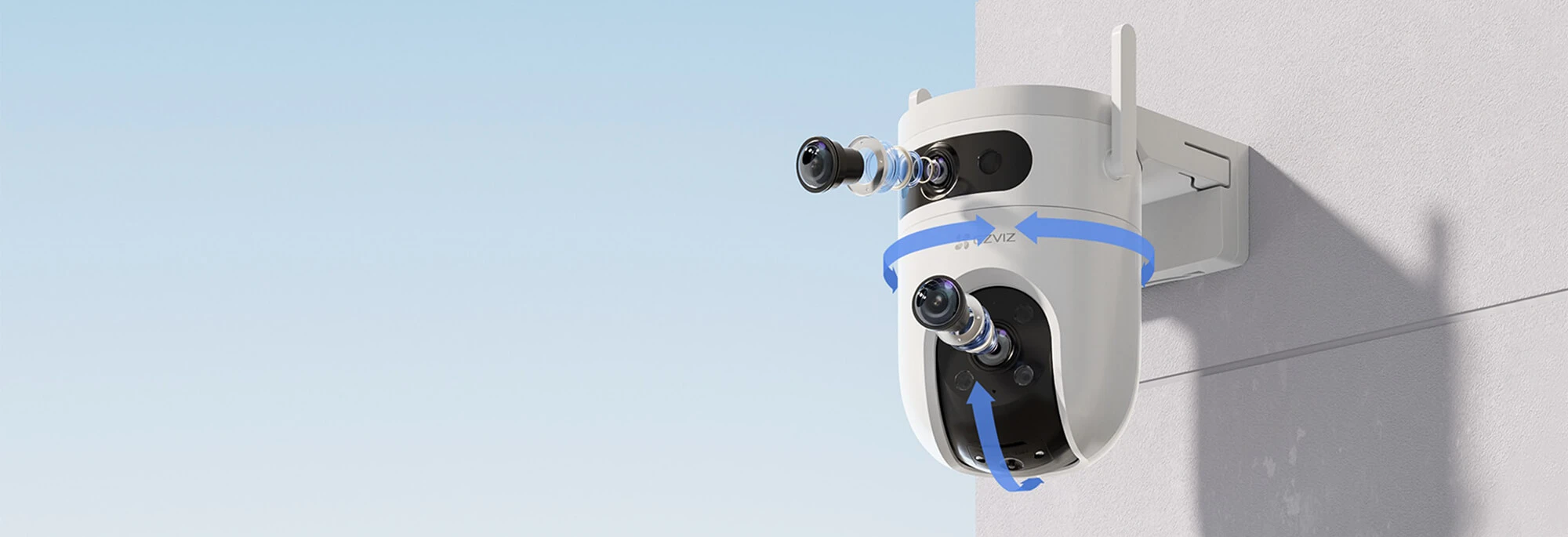 Dėl unikalios dvigubo objektyvo technologijos EZVIZ H9c užtikrina neprilygstamą apsaugą, kuri pranoksta profesionalumą. Joje naudojamas plačiakampio objektyvas, uždėtas ant pasukamo ir pakreipiamo teleobjektyvo - šis duetas veikia nepriklausomai arba kartu ir yra kur kas išmanesnis nei įprasta kamera.
