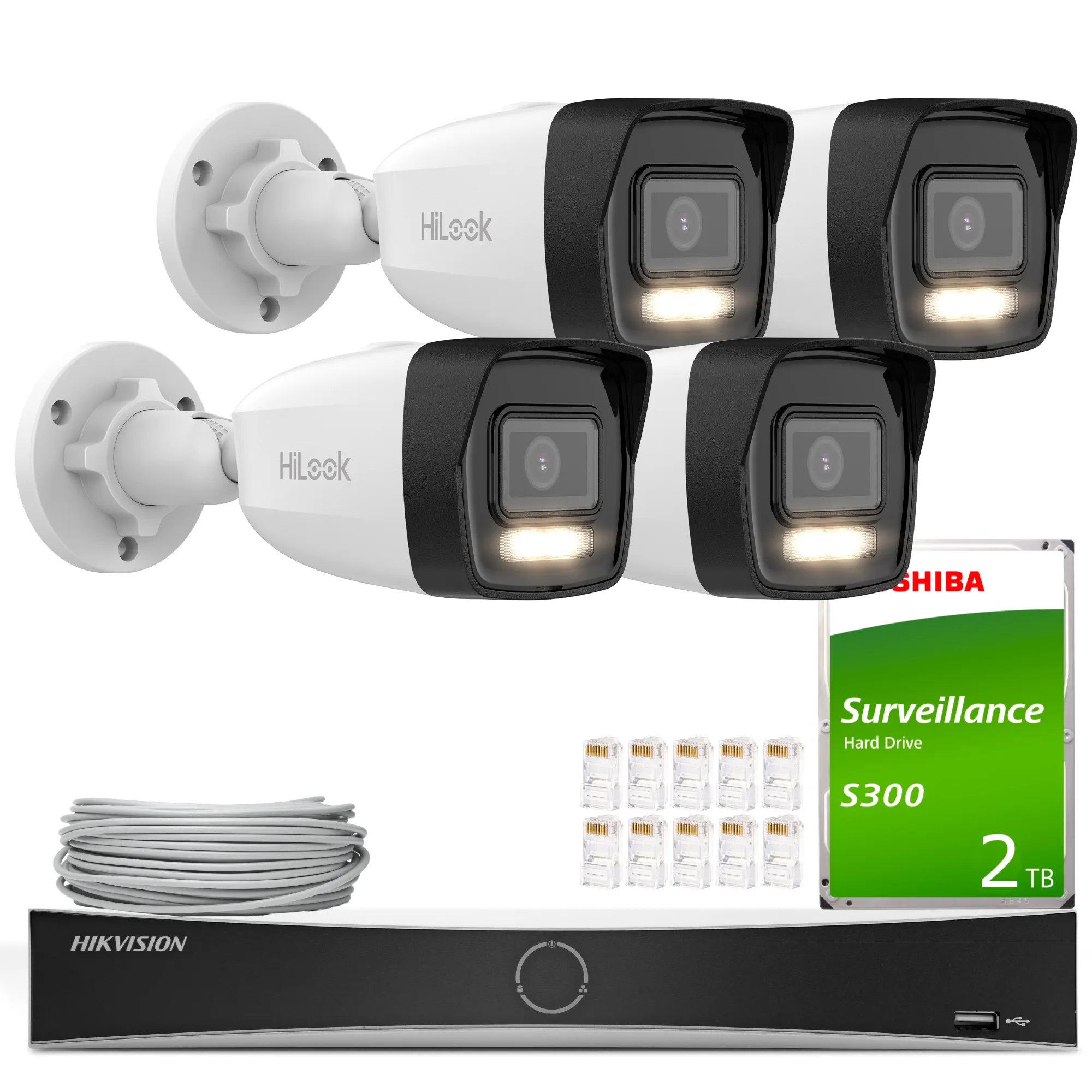 HiLook Hikvision stebėjimo rinkinys 4x IPCAM-B8-30DL 4K Smart Hybrid-Light 30m, aptikimas, H.265+