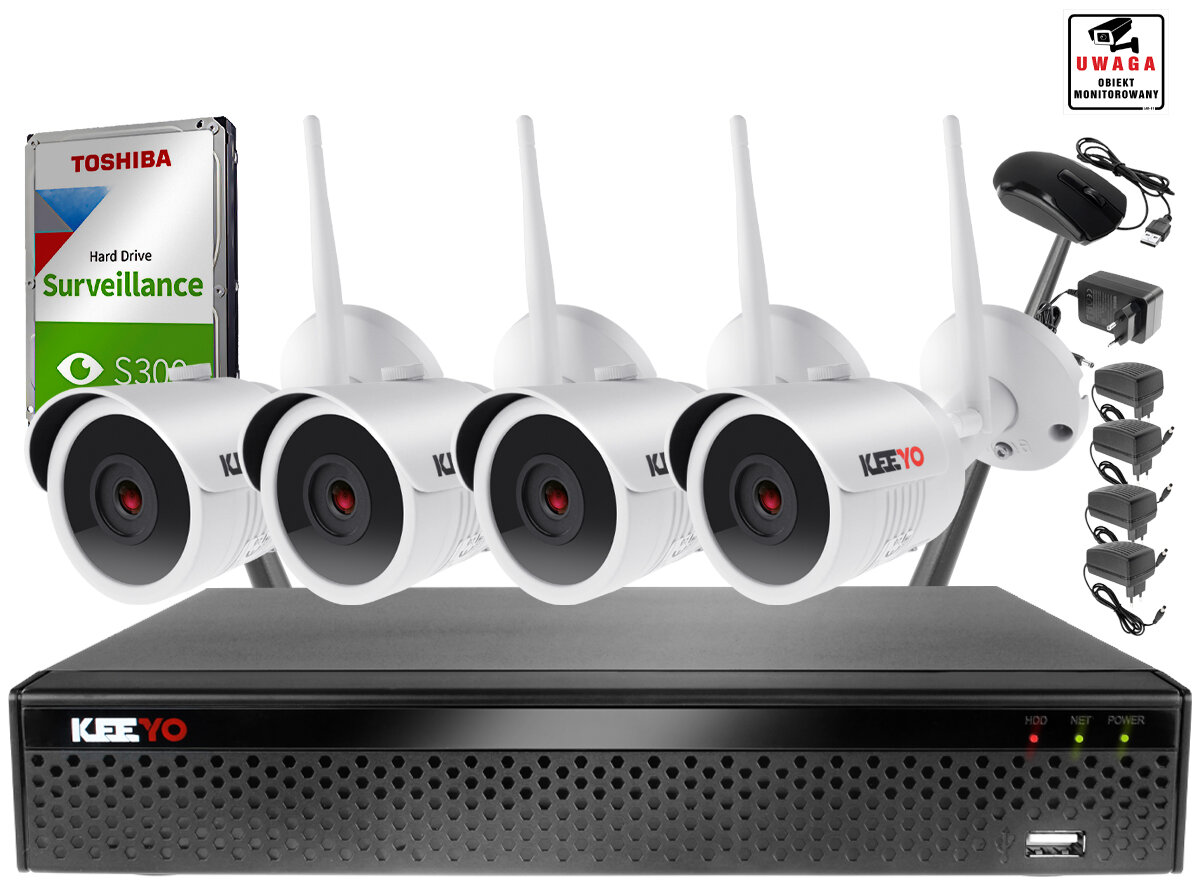 KEEYO H265+ Full HD IR 30m 1TB belaidis Wifi stebėjimo rinkinys su 4 vamzdinėmis kameromis