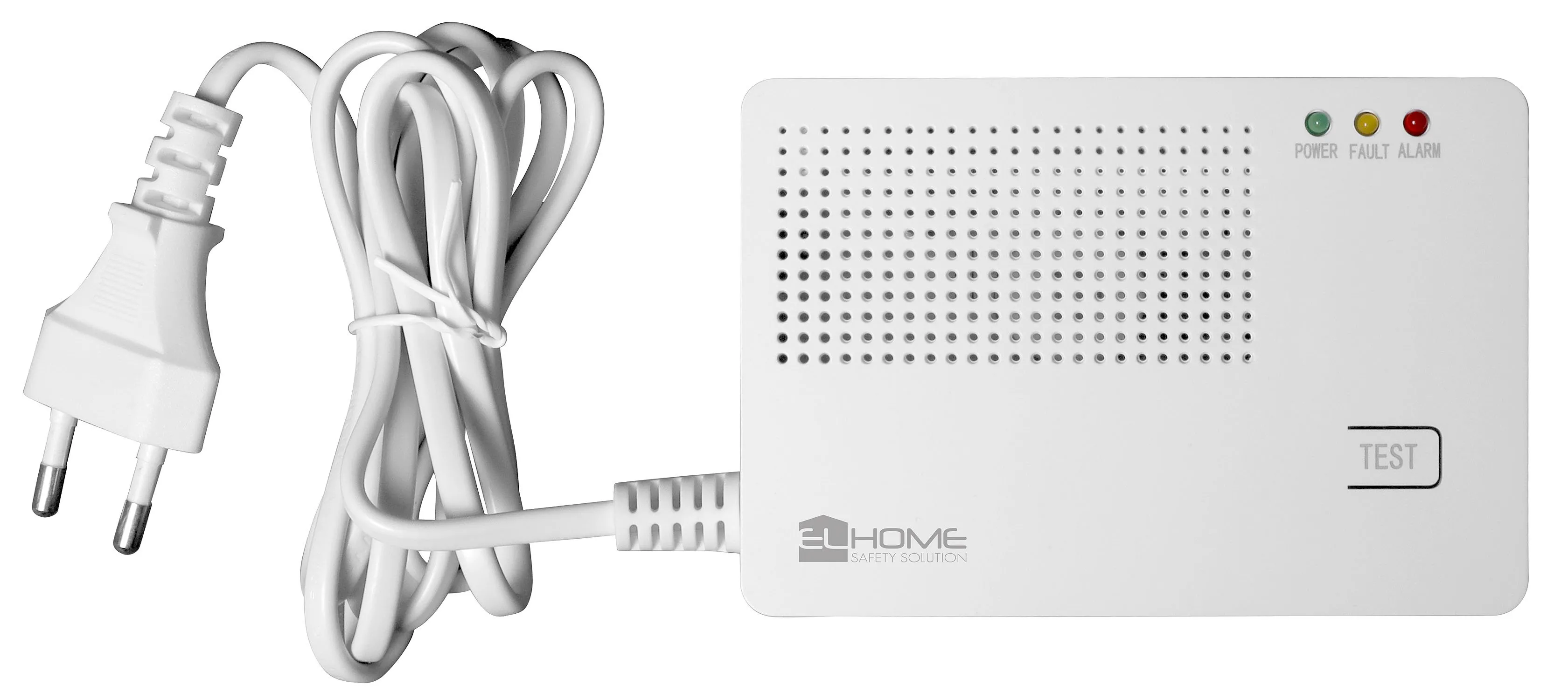 Czujnik EL HOME GD-04A4 z sensorem półprzewodnikowym stale monitoruje powietrze w pomieszczeniach i reaguje na obecność gazu ziemnego oraz LPG; przy przekroczeniu progu uruchamia alarm akustyczny 85 dB/1 m oraz optyczny, skutecznie ostrzegając domowników (zasięg detekcji ok. 20–25 m²).