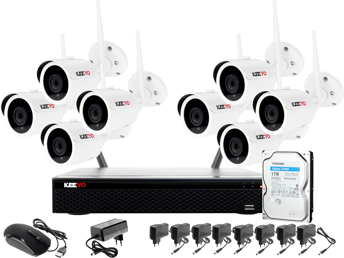 KEEYO H265+ Full HD IR 30m 1TB 8 kamerų rinkinys bevieliam Wi-Fi stebėjimui